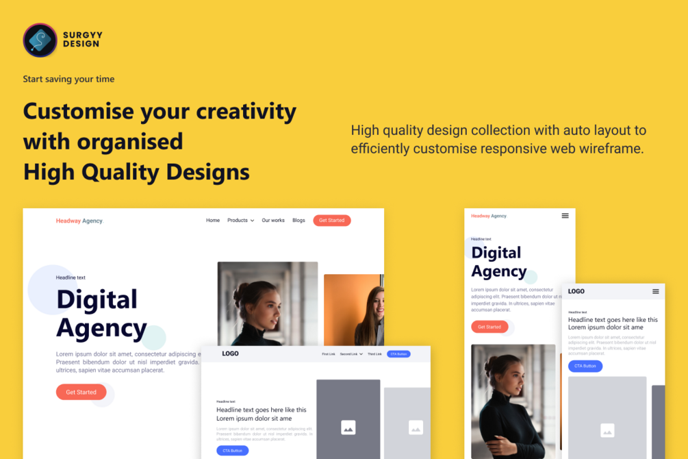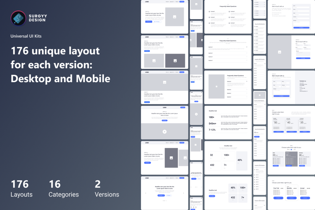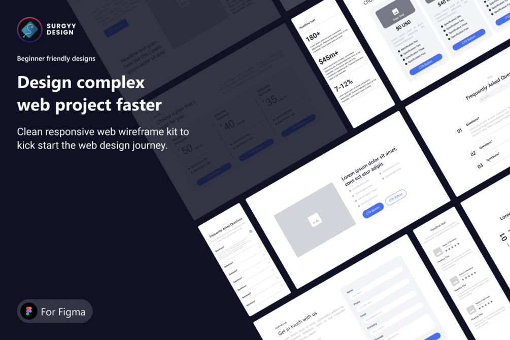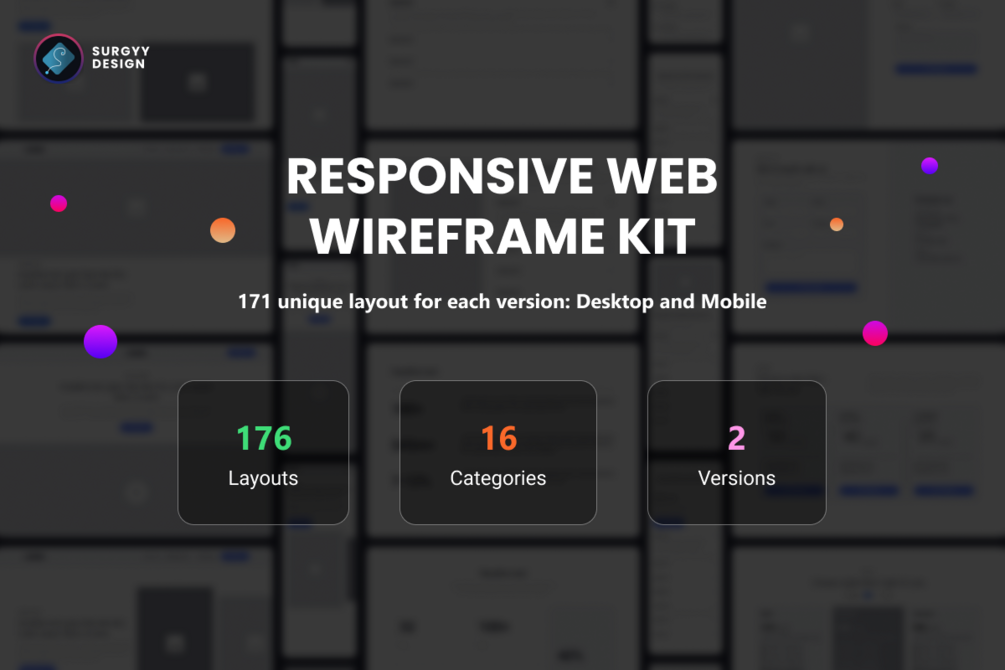 Unleash your creativity and design responsive website and app screens with ease using our responsive web wireframe kit! This responsive web wireframe kit is a collection of pre-designed templates and elements that help to streamline the process of creating a responsive website. This kits includes 170+ variety of different wireframe layouts for different screen sizes and devices, as well as pre-designed UI elements such as buttons, forms, and navigation menus which are easy to customize.