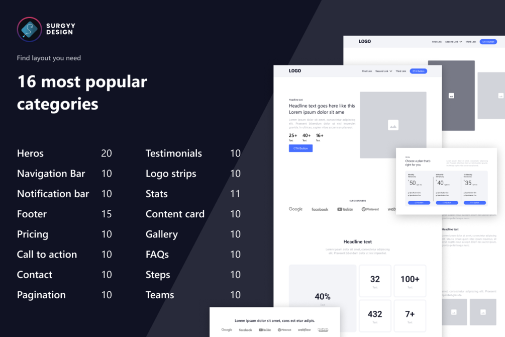 Unleash your creativity and design responsive website and app screens with ease using our responsive web wireframe kit! This responsive web wireframe kit is a collection of pre-designed templates and elements that help to streamline the process of creating a responsive website. This kits includes 170+ variety of different wireframe layouts for different screen sizes and devices, as well as pre-designed UI elements such as buttons, forms, and navigation menus which are easy to customize.
